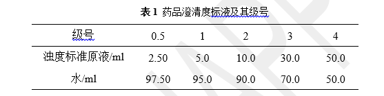 年國家藥典委員會(原名衛(wèi)生部藥典委員會成立于1950年)根據(jù)《中華人民共和國藥品管理法》的規(guī)定,負責組織編纂《中華人民共和國藥典》及制定、修訂國家藥品標準,是法定的國家藥品標準,由國家食品藥品監(jiān)督管理部門批準頒布實施。新藥典中發(fā)布了對于藥品澄清度的檢測要求,它將澄清度由清到濁規(guī)定了0.5-4(見表1)5個澄清度級號。