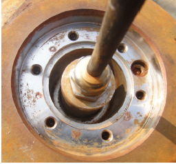 客戶處一直抱怨SONATAX sc漏水的問題,其實(shí)探頭本身是IP68的防護(hù)等級(jí),綜合隊(duì)客戶現(xiàn)場(chǎng)的考察,發(fā)現(xiàn)漏水點(diǎn)易發(fā)生于安裝支架與探頭接口處(圖5)。一些客戶在該處并沒有安裝O型密封圈墊。如果客戶不方便安裝O型密封圈墊的話,可以建議在該處打上密封膠,來防止水分侵入。
